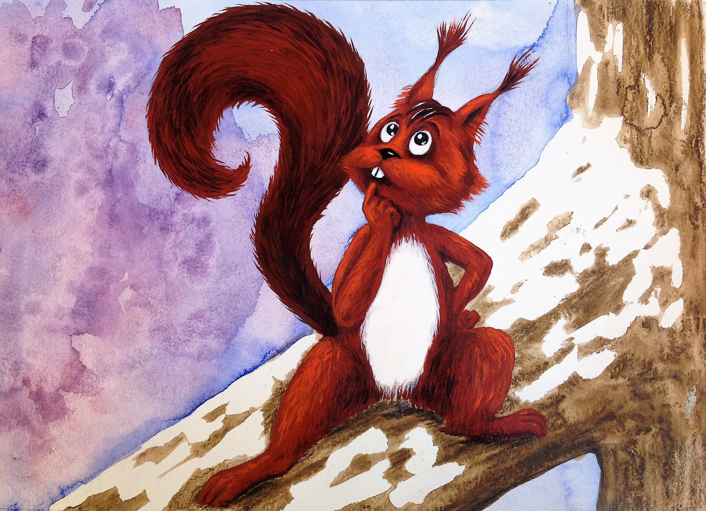 Je travaille actuellement sur l'illustration d'une nouvelle histoire pour enfants, toujours en collaboration avec Jacques Chemineau, auteur des textes. Petit écureuil, en avant première!
